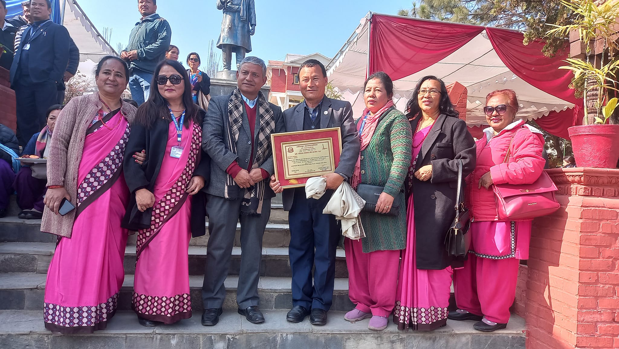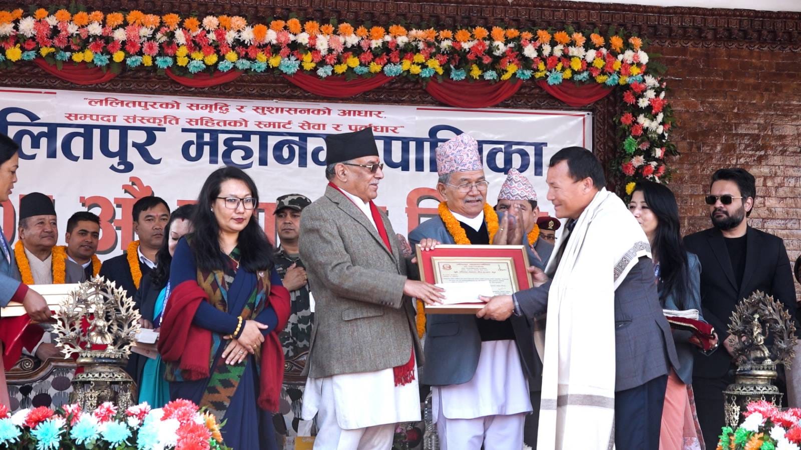 Receiving " Mahanagar Gaurav Puraskar" award from Honorable Prime Minister of Nepal